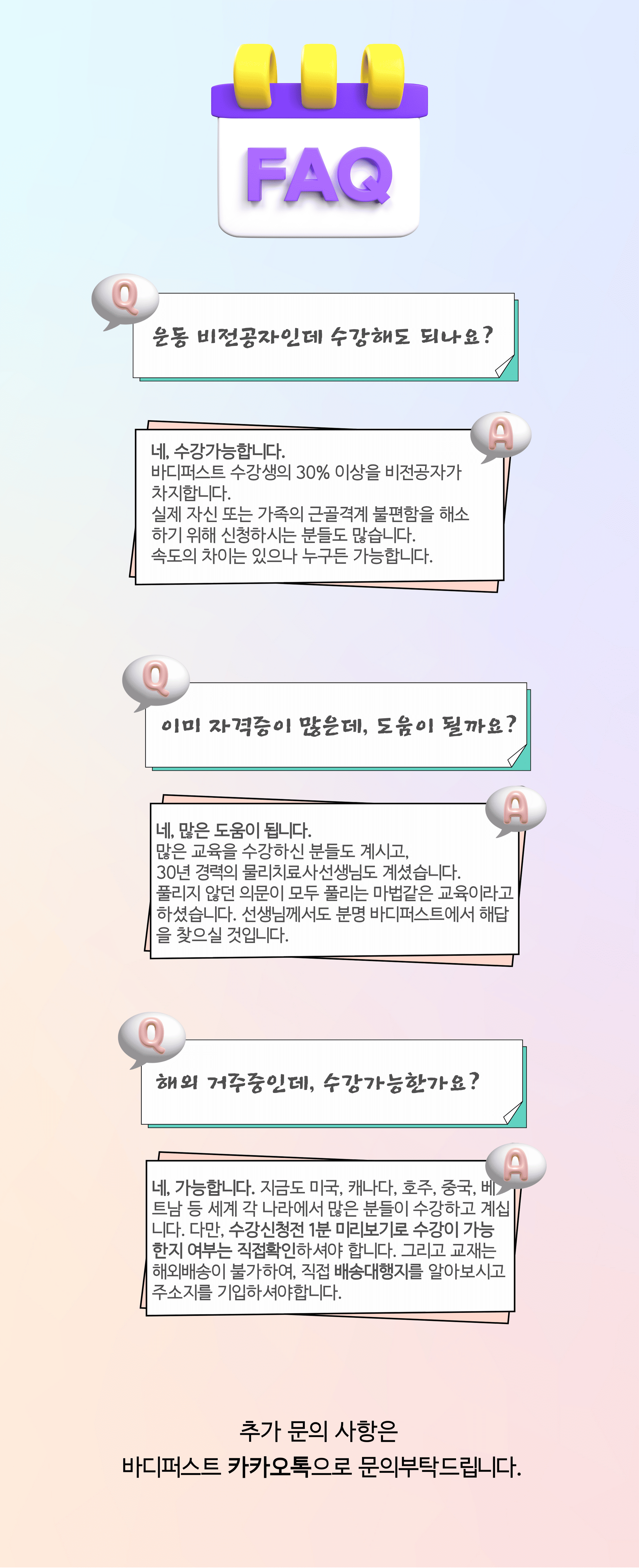 - 할인쿠폰은 환불이 불가하며, 바디퍼스트ON 제공하는 인터넷강의서비스에만 적용이 됩니다.
